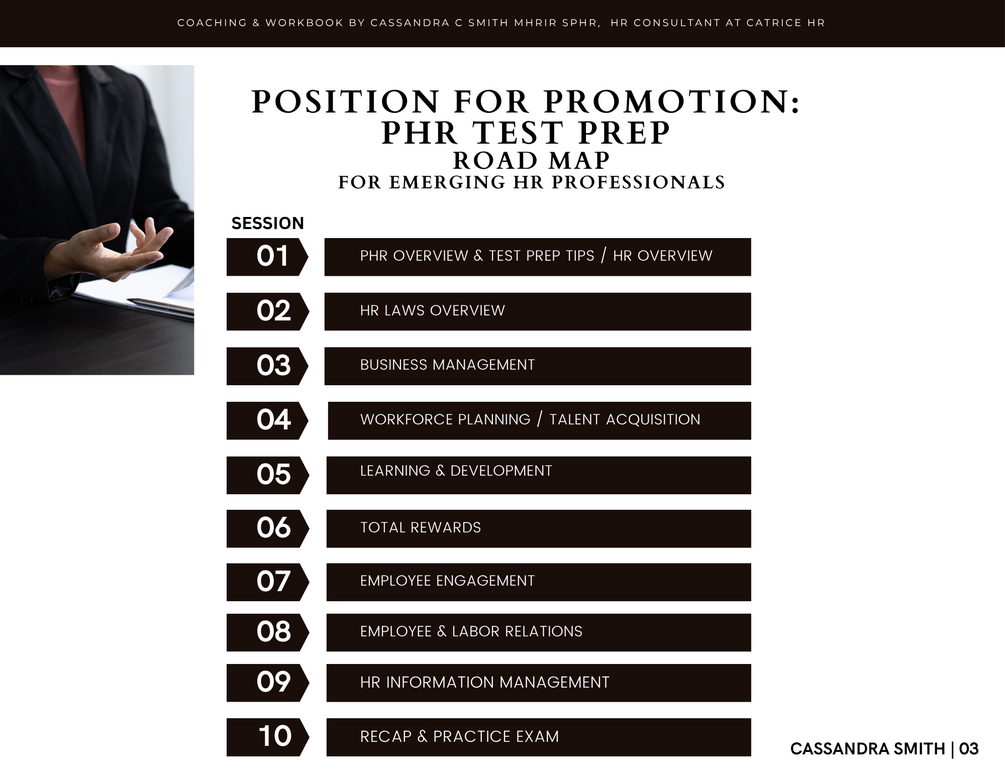 Position for Promotion – PHR Test Prep is a strategic, career-elevating program created to help emerging HR professionals and career-pivoters prepare for and pass the Professional in Human Resources (PHR) exam through HRCI - Human Resources Certification Institute with confidence. Unlike generic test prep courses, this program combines credential mastery with practical HR knowledge, leadership readiness, and career positioning tools to ensure participants not only pass the exam—but also position themselves for promotion and long-term career success in the HR field.